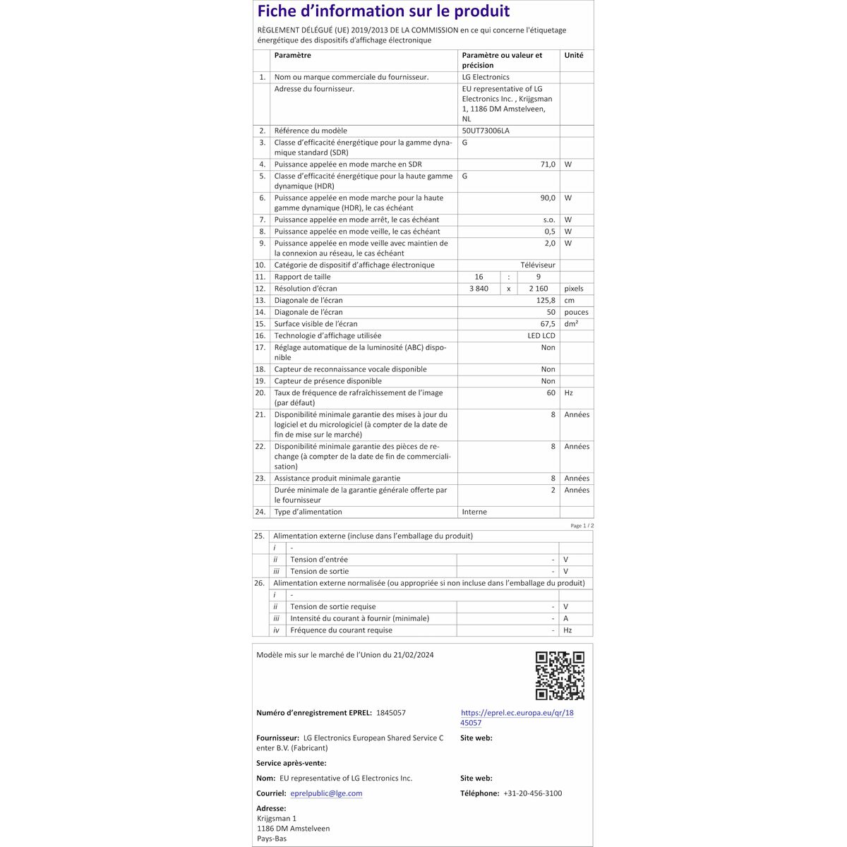 - Ecran: 50"